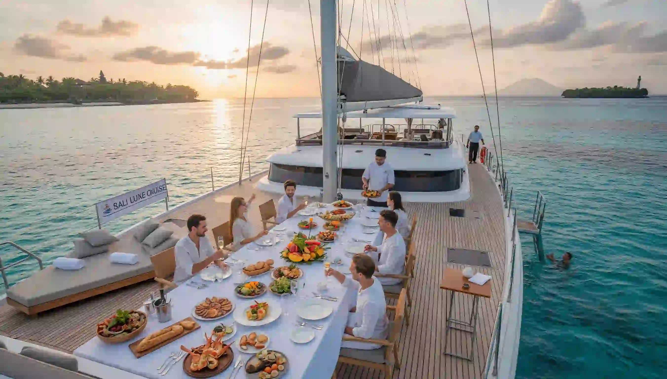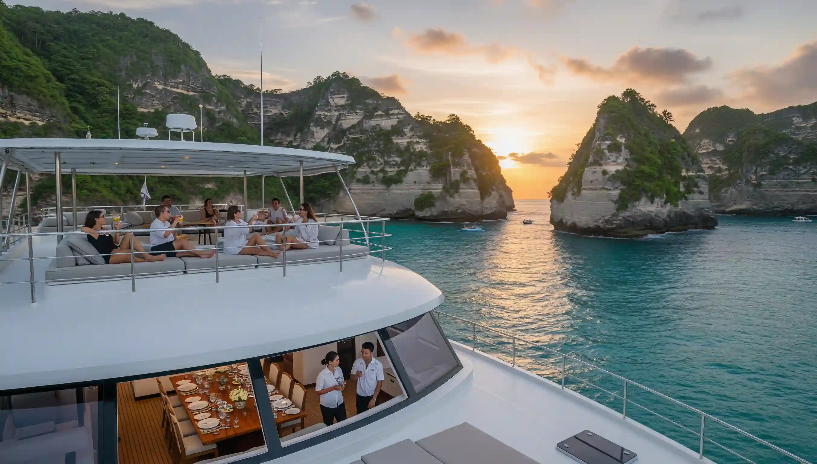 Onboard, everything is designed around your comfort and enjoyment. Spacious sun decks invite you to relax with refreshments while air-conditioned interiors provide respite from the tropical sun. Our attentive crew anticipates your needs without intruding on your experience, ensuring every moment feels effortless and exclusive.