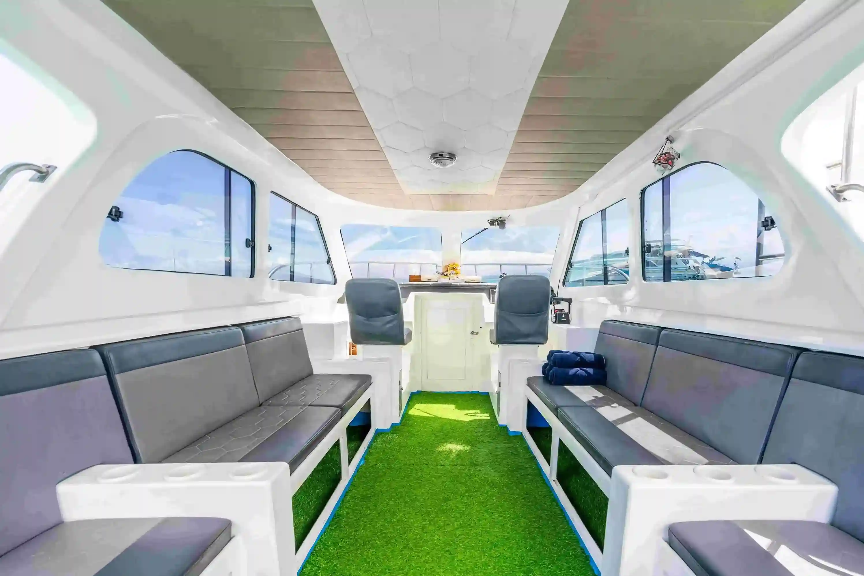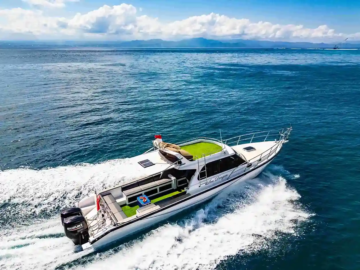 Sea Dragon menghadirkan keseimbangan sempurna antara kecepatan, gaya, dan kenyamanan untuk petualangan Nusa Penida Anda. Speedboat modern sepanjang 12 meter ini menampilkan lambung putih memukau yang ditenagai mesin outboard kembar, memastikan penyeberangan cepat hanya 40 menit dari Pelabuhan Serangan. Dek haluan yang luas dilengkapi rumput sintetis premium dan bean bag lounger berukuran besar, menciptakan ruang ideal untuk berjemur sambil menikmati pesona garis pantai Bali yang dramatis. Baik Anda lebih suka merasakan semilir angin laut di dek atau bersantai di tempat teduh, Sea Dragon menawarkan ruang serbaguna yang dirancang khusus untuk pelancong yang mengutamakan kualitas.